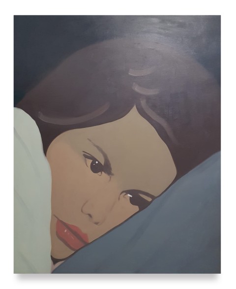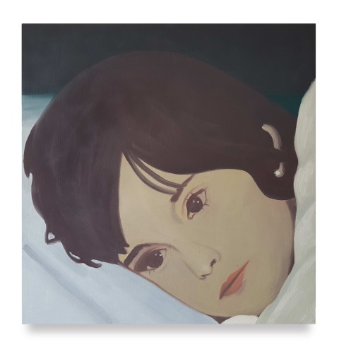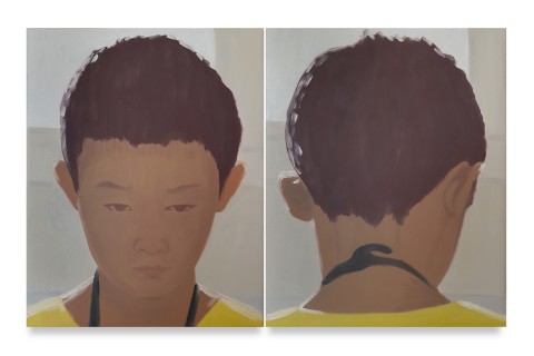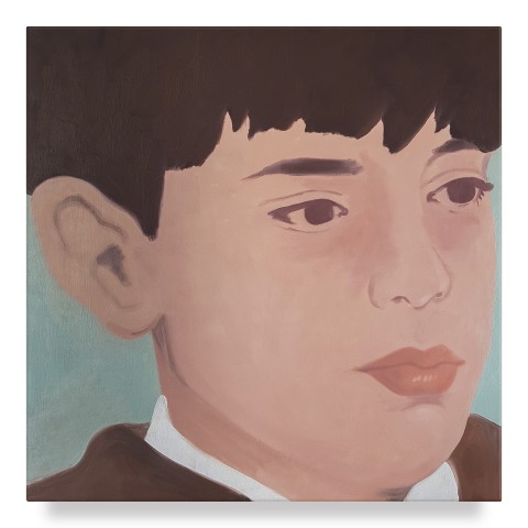 The possibilities of each painting are carefully worked out in numerous studies, used to experiment with color, tone, and composition, and to identify what is most compelling in the original image. Equally crucial is the capture and articulation of nuances that make the child’s face recognizably childlike. Only after this long process of careful planning are the paintings themselves undertaken. Each painting is completed in a single session in order to maintain the immediacy of the experience of the original image. Working in one session allows the paint to interact with itself (often wet on wet) and brings greater expressiveness to each brushstroke, which counterbalances the areas of flatness. This preserves the bold composition of the image while also allowing the viewer to linger on moments within the painting.